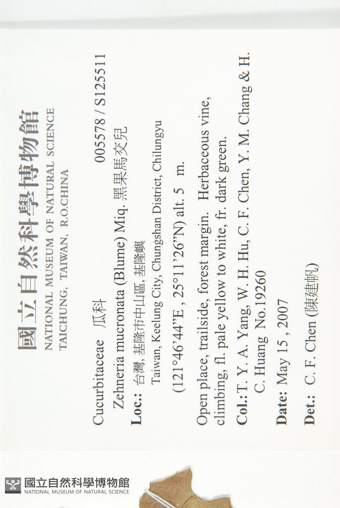 Collector:T. Y. A. Yang, W. H. Hu, C. F. Chen, Y. M. Chang & H. C. Huang