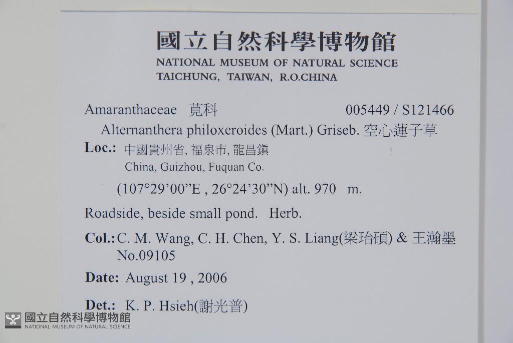 Collector:Chiu-Mei Wang (王秋美),Chih-Hsiung Chen (陳志雄), Yi-Shuo Liang (梁珆碩) & al.