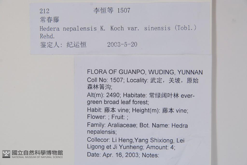 Collector:Heng Li (李恆), Shi-Xiong Yang, Li-Gong Lei, & al.