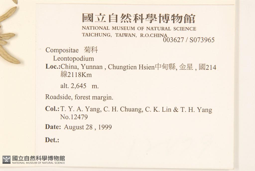 Collector:T. Y. Aleck Yang (楊宗愈), Chen-Hsing Chuang (莊振興), Chung-Kang Lin (林仲剛), & al.
