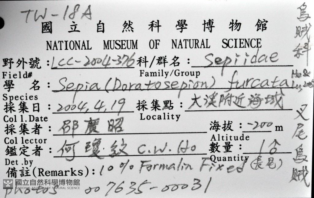 Scientific Name:Sepia (Doratosepion) furcata Ho & Lu