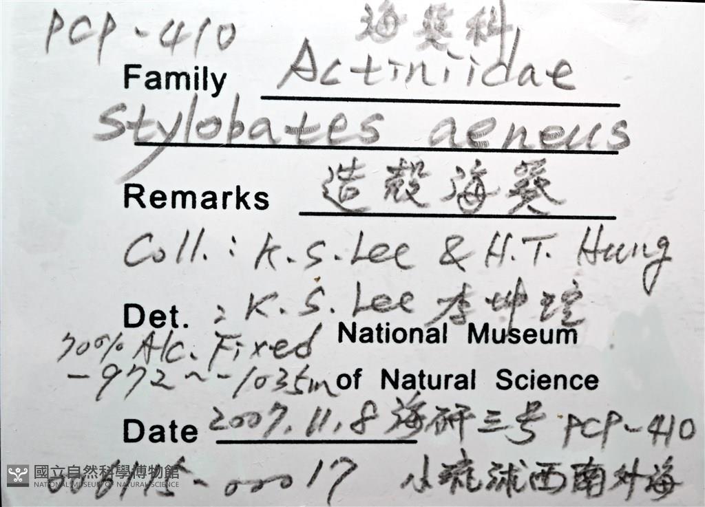 Scientific Name:Stylobates aeneus Dall,1903