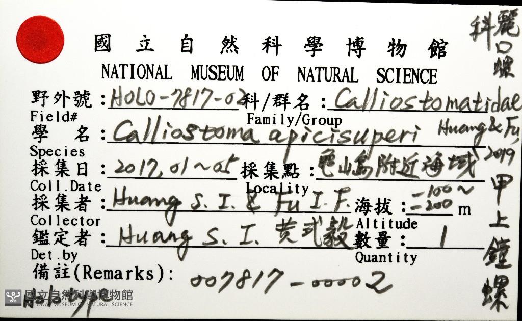 Scientific Name:Calliostoma apicisuperi Huang & Fu
