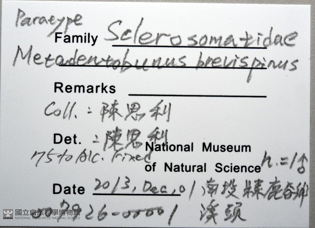 Scientific Name:Metadentobunus brevispinus Chen & Shih