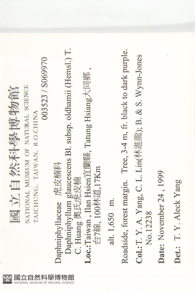 Collector:T. Y. A. Yang, C. L. Lin(林進龍), B. & S. Wynn-Jones