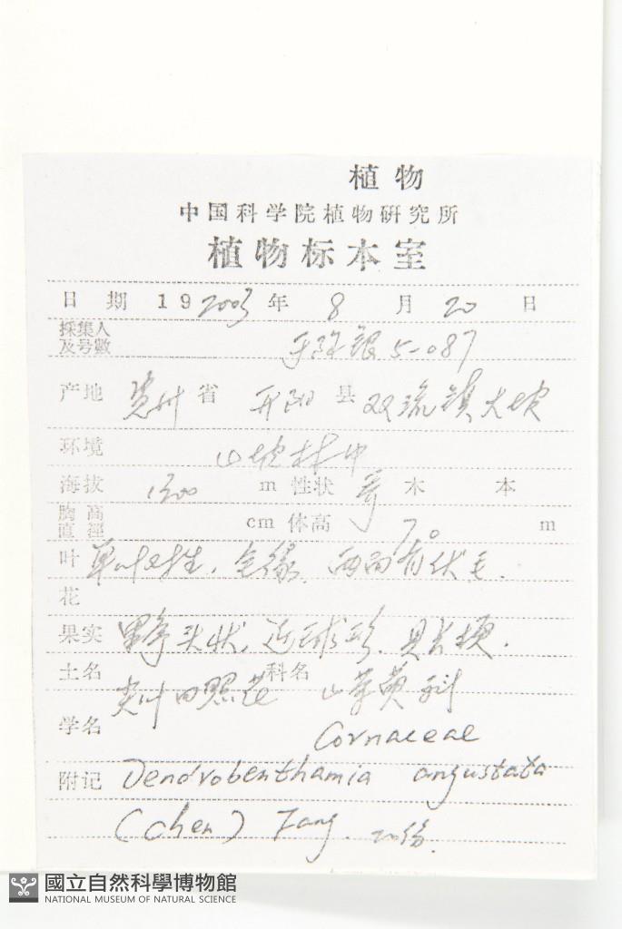 Scientific Name: Dendrobenthamia angustata (Chun) Fang