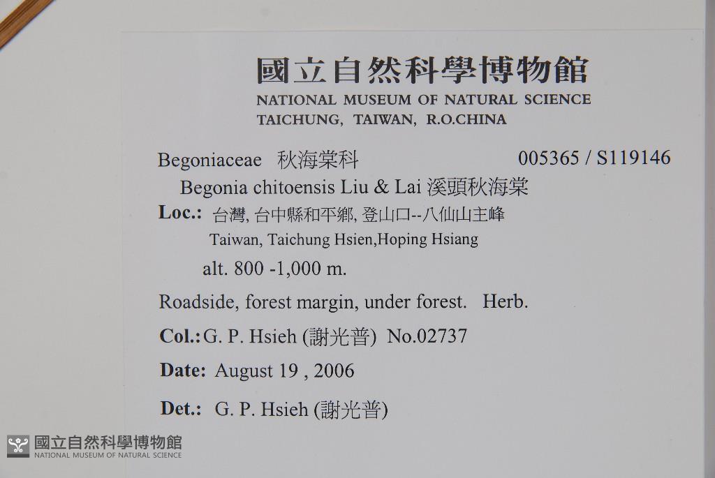 Scientific Name: Begonia chitoensis T.S.Liu & M.J.Lai