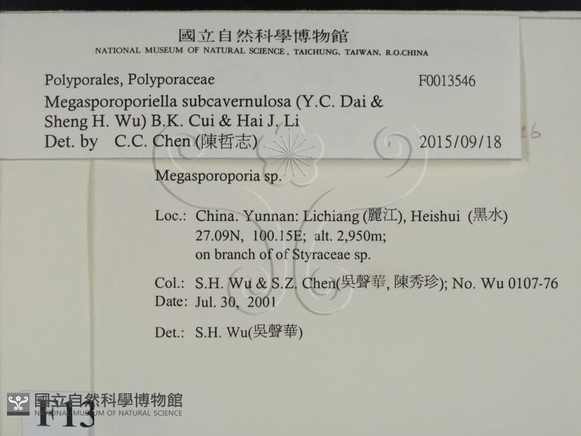Megasporoporiella subcavernulosa (Y.C. Dai & Sheng H. Wu) B.K. Cui & Hai J. Li