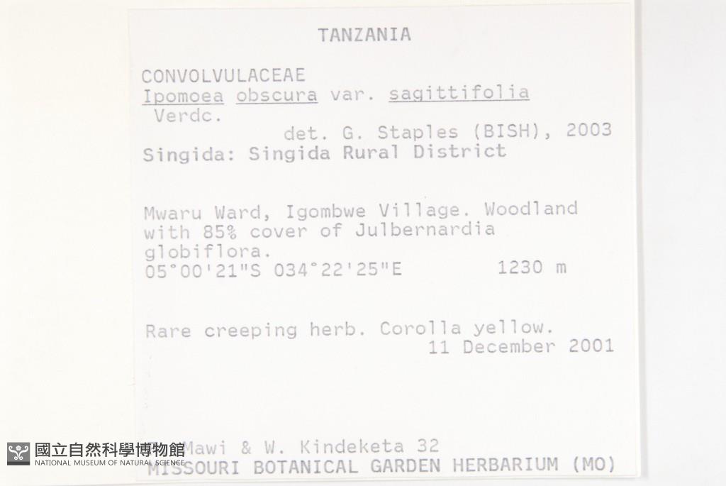 Scientific Name: Ipomoea obscura (L.) Ker Gawl. var. sagittifolia Verdc.