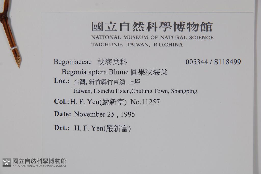 Scientific Name: Begonia aptera Blume