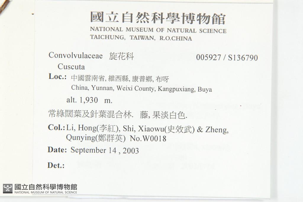 Collector:Hong Li (李紅), Xiao-Wu Shi (史效武) & Qun-Ying Zheng (鄭群英)