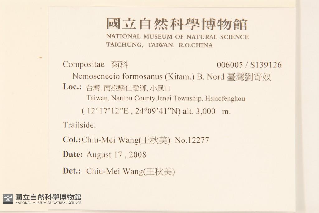 Scientific Name: Nemosenecio formosanus (Kitam.) B. Nord