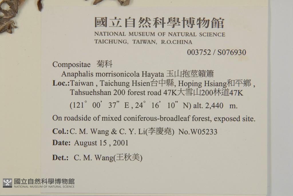 Scientific Name: Anaphalis morrisonicola Hayata