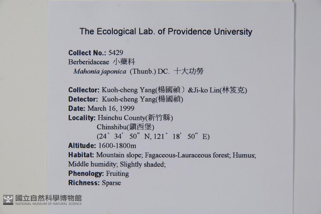Collector:Kuoh-Cheng Yang (楊國禎) & Jei-Ker Lin (林笈克)