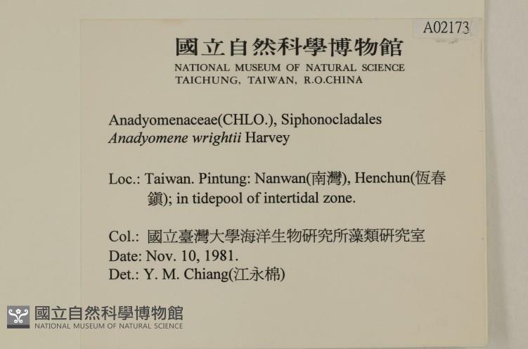 Collector:國立臺灣大學海洋生物研究所藻類研究室