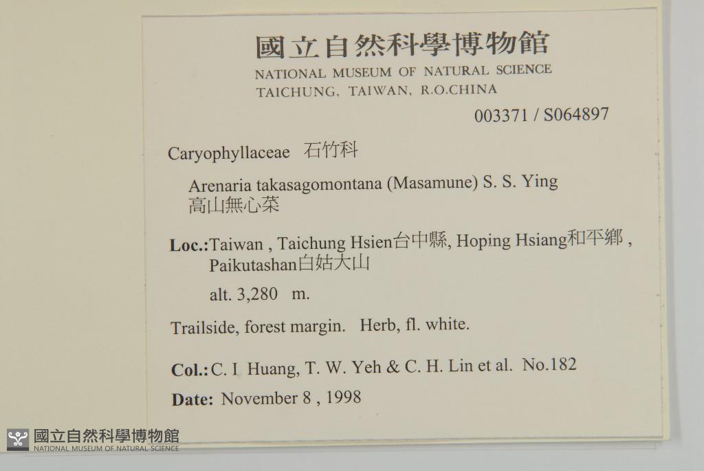 Collector:C. I. Huang, T. W. Yeh & C. H. Lin et al.