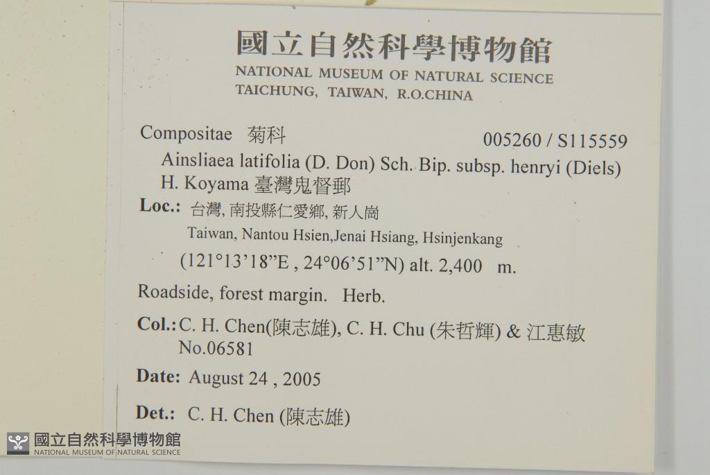 Scientific Name: Ainsliaea latifolia (D. Don) Sch. Bip. subsp. henryi (Diels) H. Koyama
