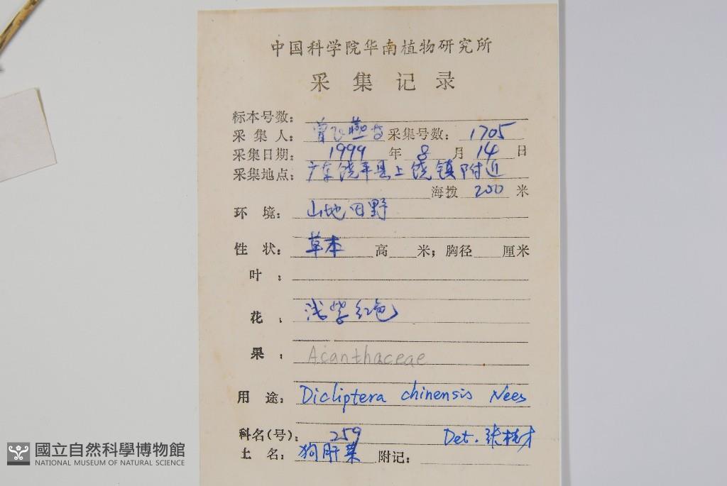 Collector's No.:01705