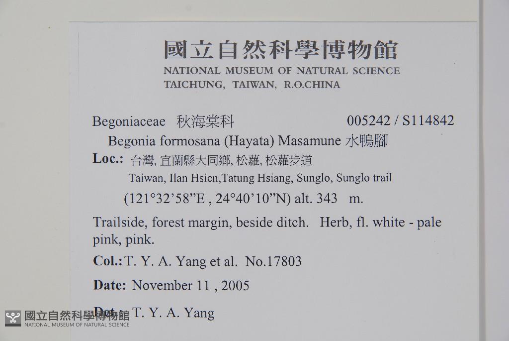 Scientific Name: Begonia formosana (Hayata) Masam.