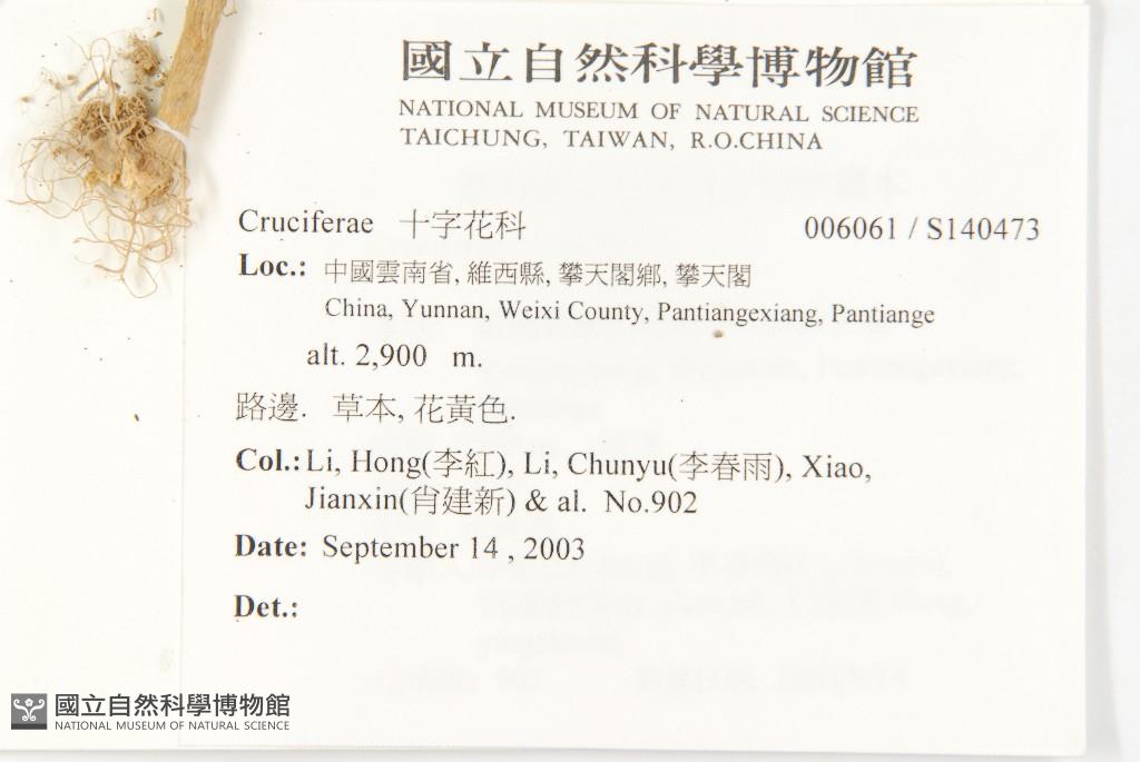 Collector:Hong Li (李紅), Chun-Yu Li (李春雨), Jian-Xin Xiao(肖建新), & al.
