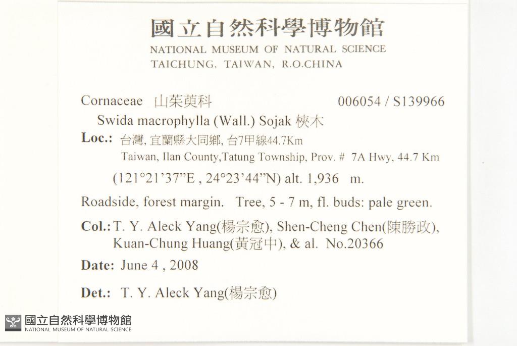 Collector:T. Y. Aleck Yang(楊宗愈), Shen-Cheng Chen(陳勝政), Kuan-Chung Huang(黃冠中), & al.