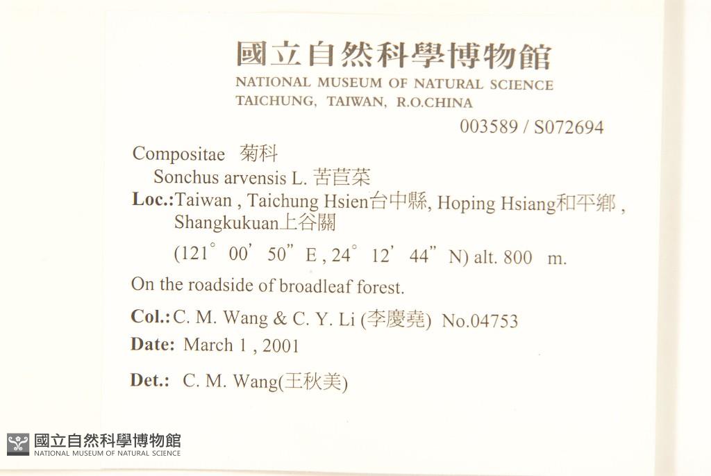 Collector:Chiu-Mei Wang (王秋美), & Ching-Yao Li (李慶堯)