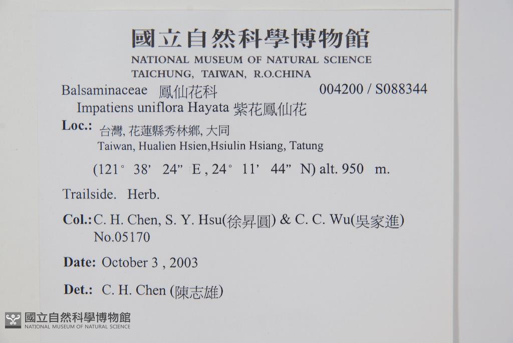 Scientific Name: Impatiens uniflora Hayata