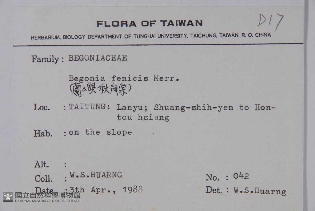 Scientific Name: Begonia fenicis Merr.