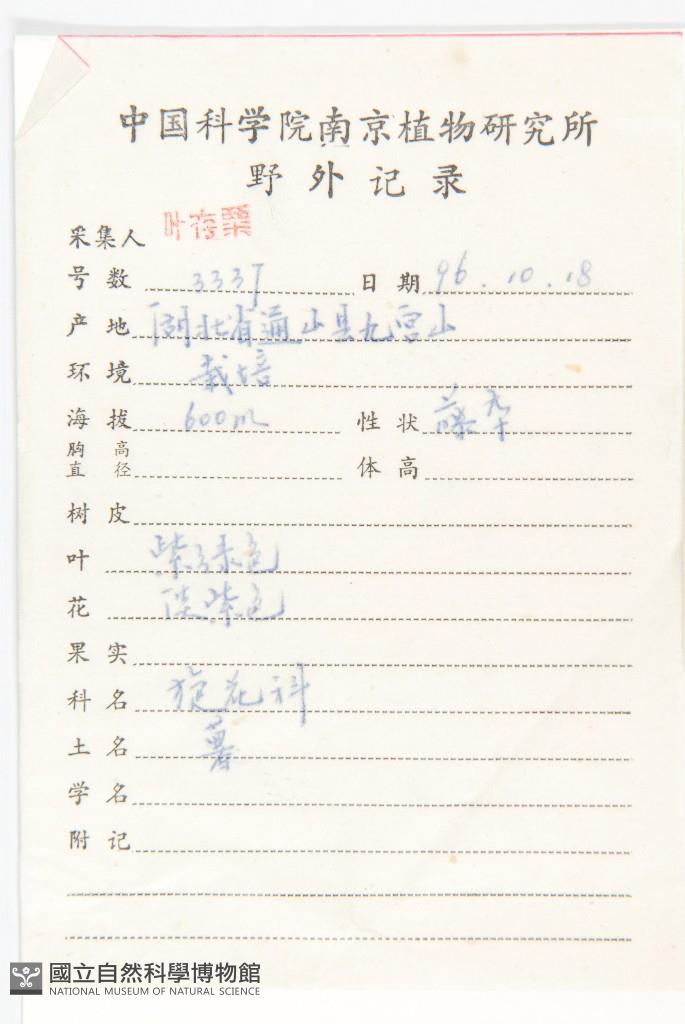 Collector:C. S. Ye(葉存粟)