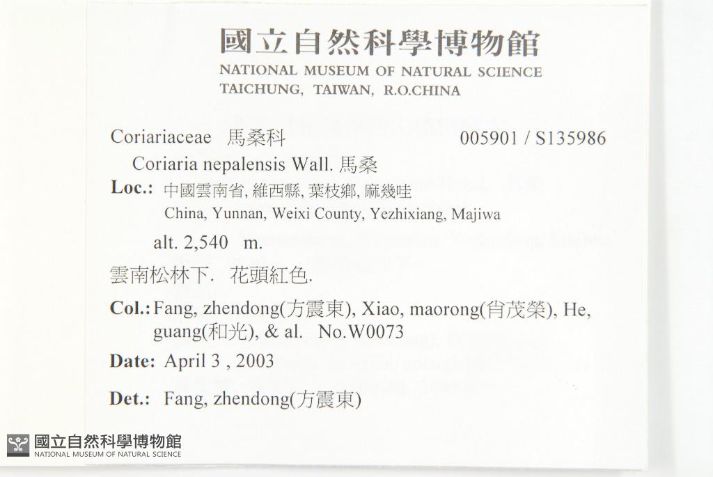 Collector:Zhen-Dong Fang (方震東), Mao-Rong Xiao (肖茂榮), Guang He (和光) & al.