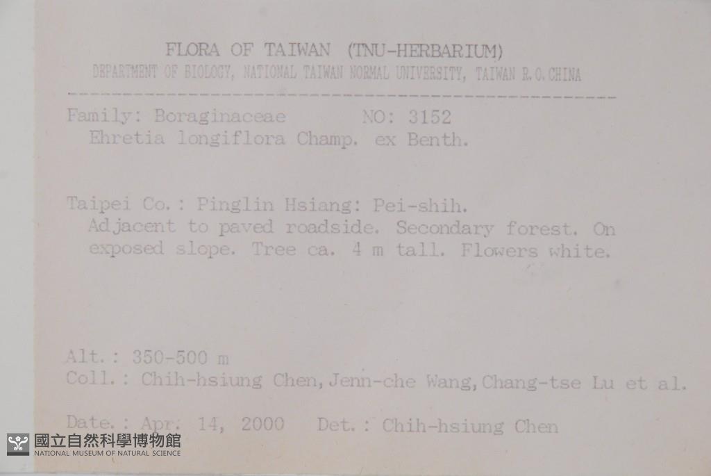 Collector:Chih-Hsiung Chen (陳志雄), Jenn-Che Wang (王震哲), Chang-Tse Lu (呂長澤) & al.