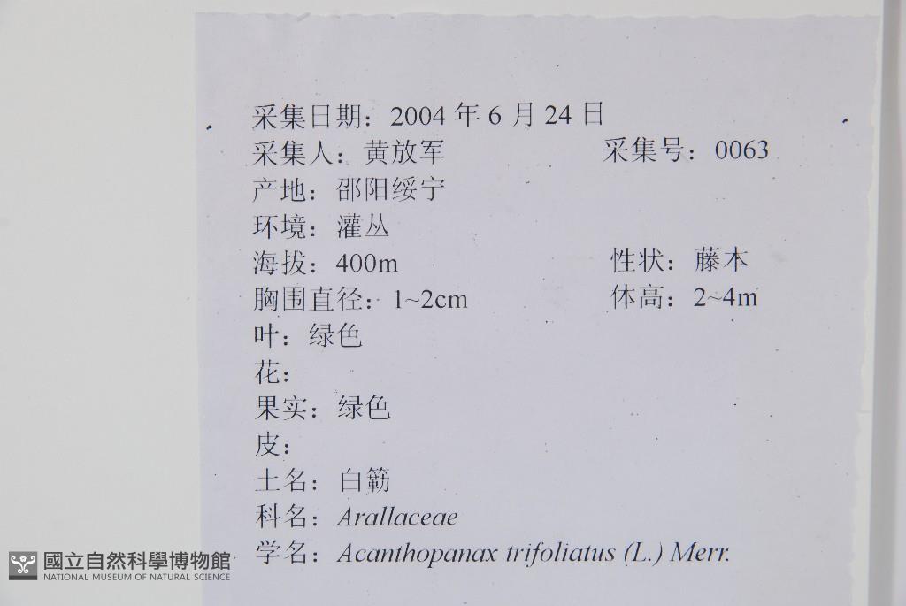 Scientific Name: Acanthopanax trifoliatus (L.) Merr.