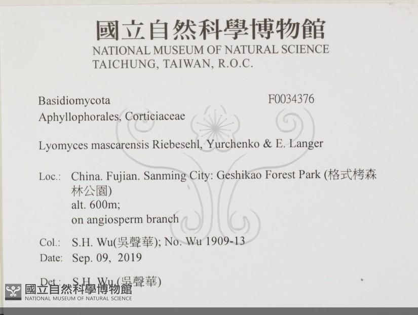 Lyomyces mascarensis Riebesehl, Yurchenko & E. Langer