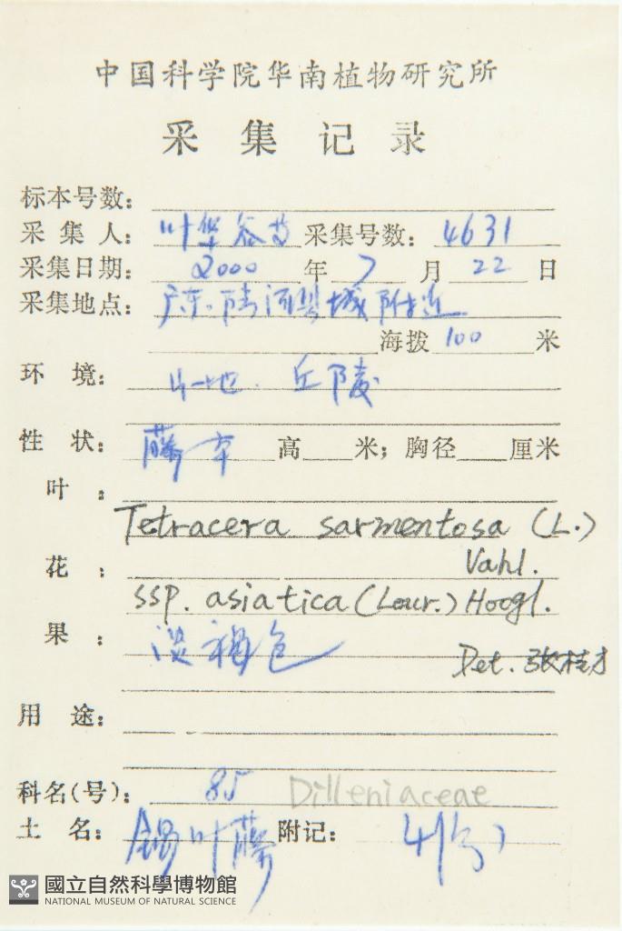 Scientific Name: Tetracera sarmentosa (Linn.) Vahl subsp. asiatica (Lour.) Hoogl.