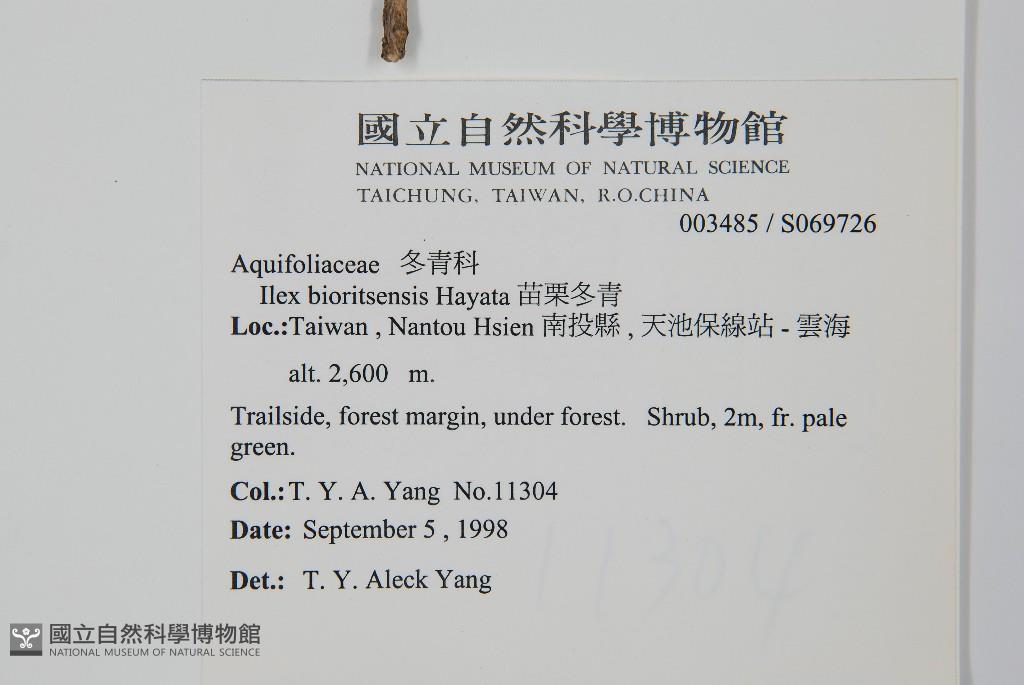Scientific Name: Ilex bioritsensis Hayata