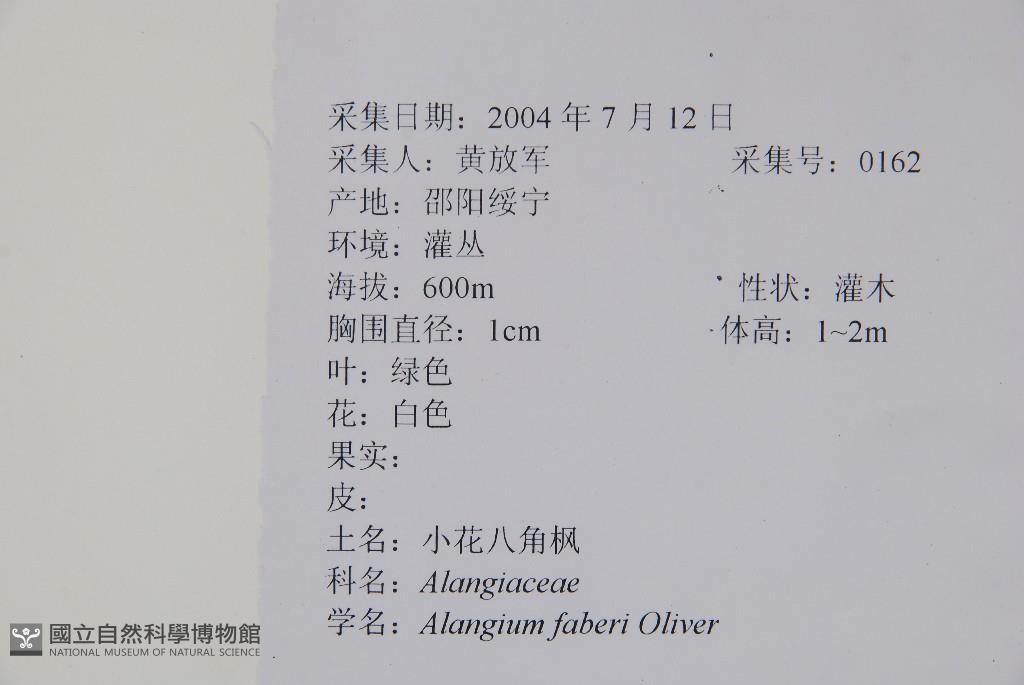 Scientific Name: Alangium faberi Oliver