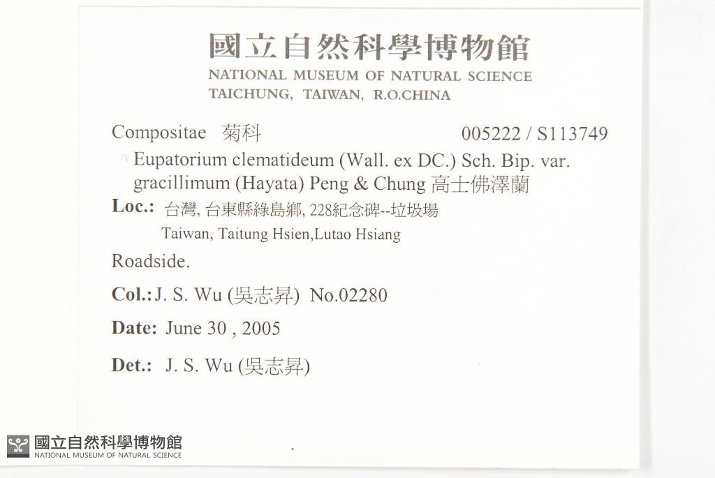 Scientific Name: Eupatorium clematideum (Wall. ex DC.) Sch. Bip. var. gracillimum (Hayata) C. I Peng & Chun