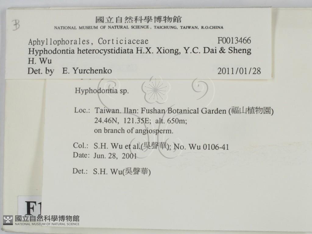 Hyphodontia heterocystidiata H.X. Xiong, Y.C. Dai & Sheng H. Wu