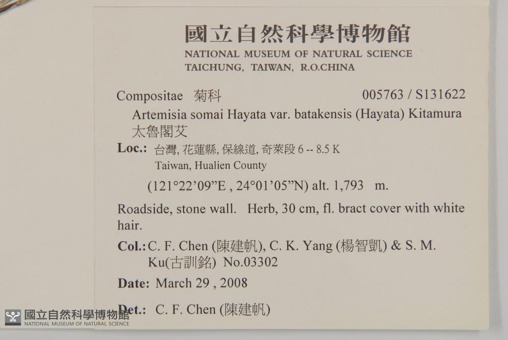 Scientific Name: Artemisia somai Hayata var. batakensis (Hayata) Kitamura