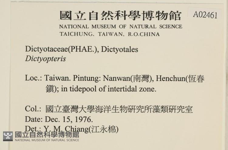 Collector:國立臺灣大學海洋生物研究所藻類研究室