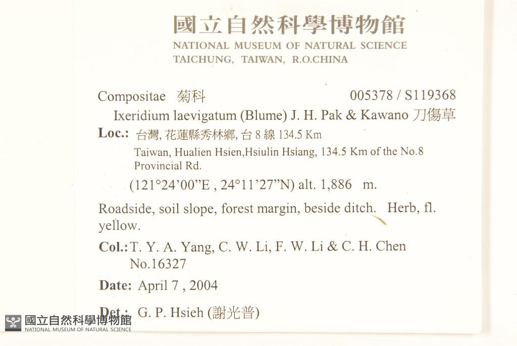 Collector:T. Y. A. Yang, C. W. Li, F. W. Li & C. H. Chen