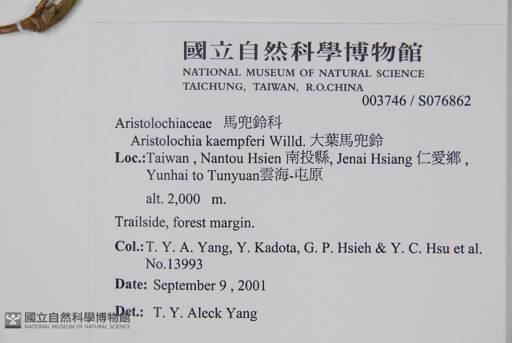 Collector:T. Y. A. Yang, Y. Kadota, G. P. Hsieh & Y. C. Hsu et al.