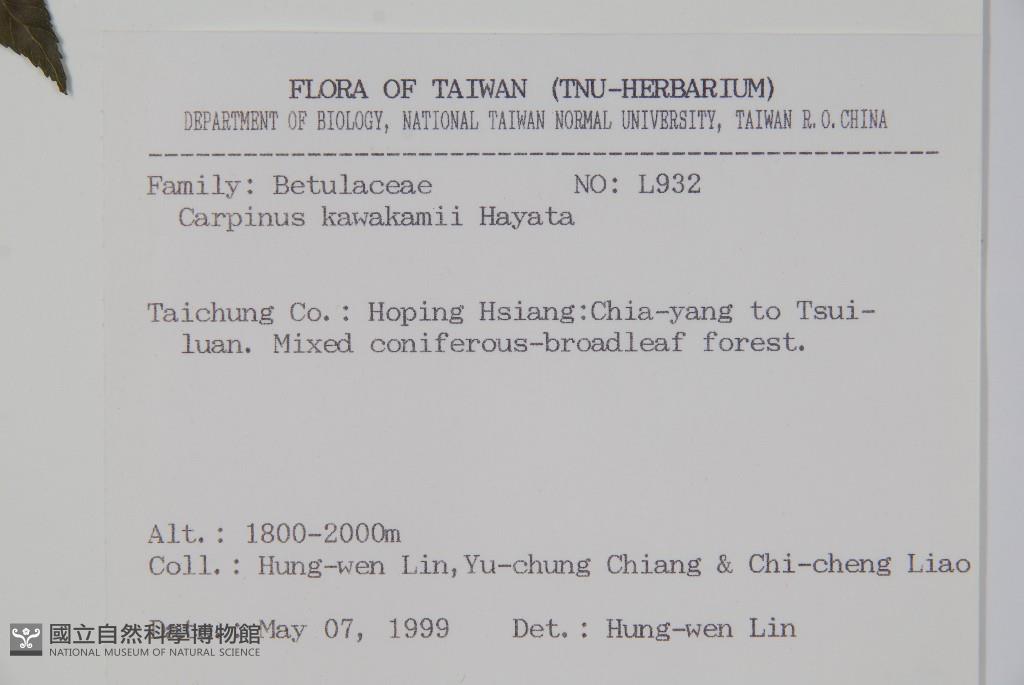 Scientific Name: Carpinus kawakamii Hayata