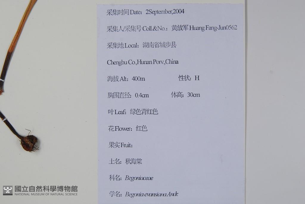 Scientific Name: Begonia evansiana Andr.