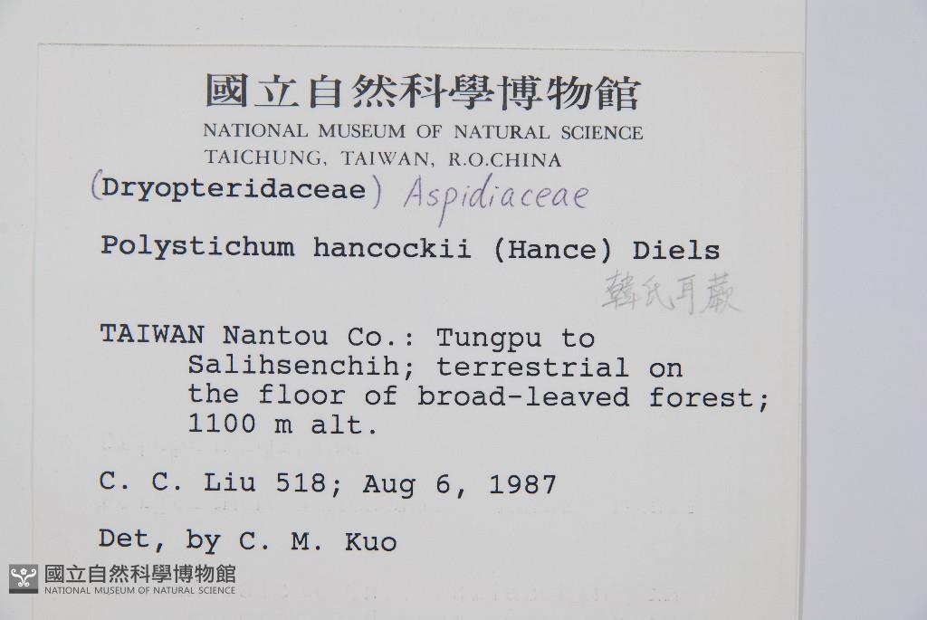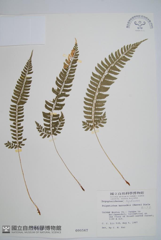 Scientific Name: Polystichum hancockii (Hance) Diels