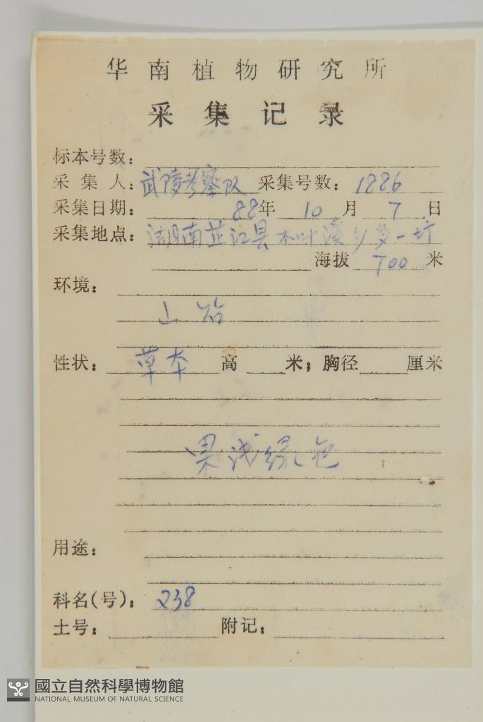 Collector's No.:武01886