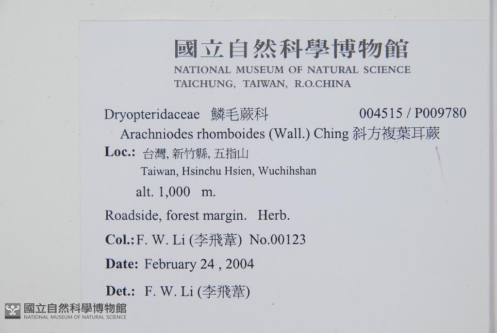 Scientific Name: Arachniodes rhomboides (Wall.) Ching