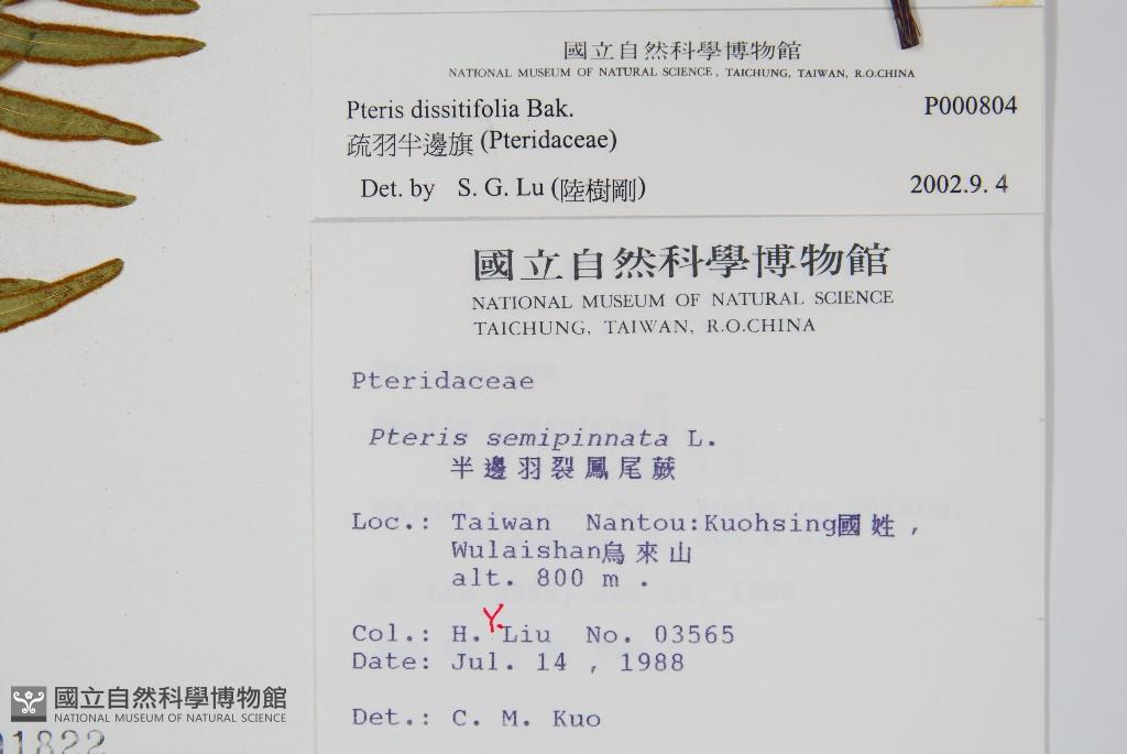 Scientific Name: Pteris dissitifolia Bak.