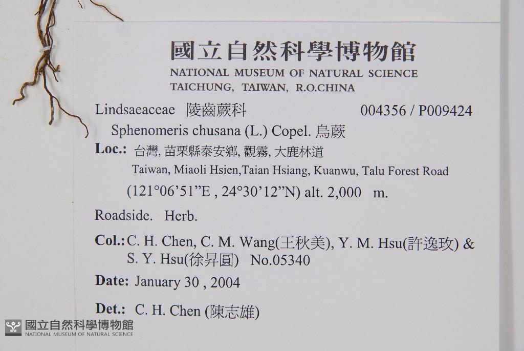 Collector:Chih-Hsiung Chen (陳志雄), Chiu-Mei Wang (王秋美), Yi-Mei Hsu (許逸玫), & al.