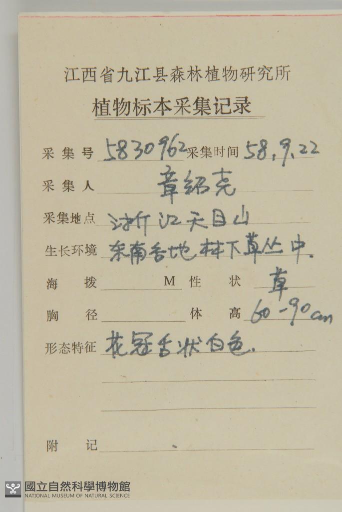 Locality:Lin'an Co. Hsitienmu Hsiang, Mt. Tienmushan